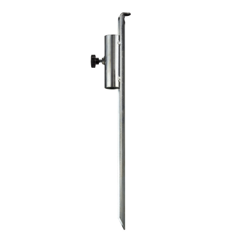 Stojan na slnečníky s priemerom tyče od 15 do 34 mm. Pozinkovaný kov, praktická skrutka s ryhovanou hlavou pritiahnutie a uvoľnenie bez použitia náradia, dlhý hrot na zapichnutie do zeme.